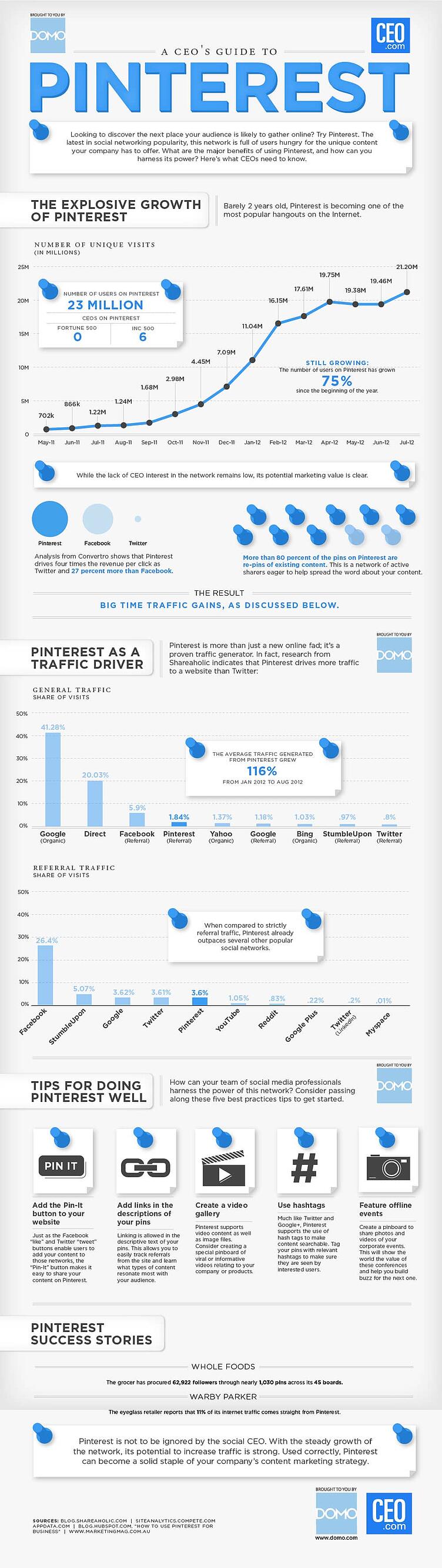 Domo and CEO.com assembled this handy guide to Pinterest for CEOs. It’s got statistics, best practices, and success stories all in one glance."